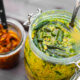 Like the chilli pickle, this pickle is made with a spiced oil base and takes a couple of weeks to mature, only getting better and more intense with age. Try it with curries, rice dishes, sandwiches, or even scrambled eggs – why not?).